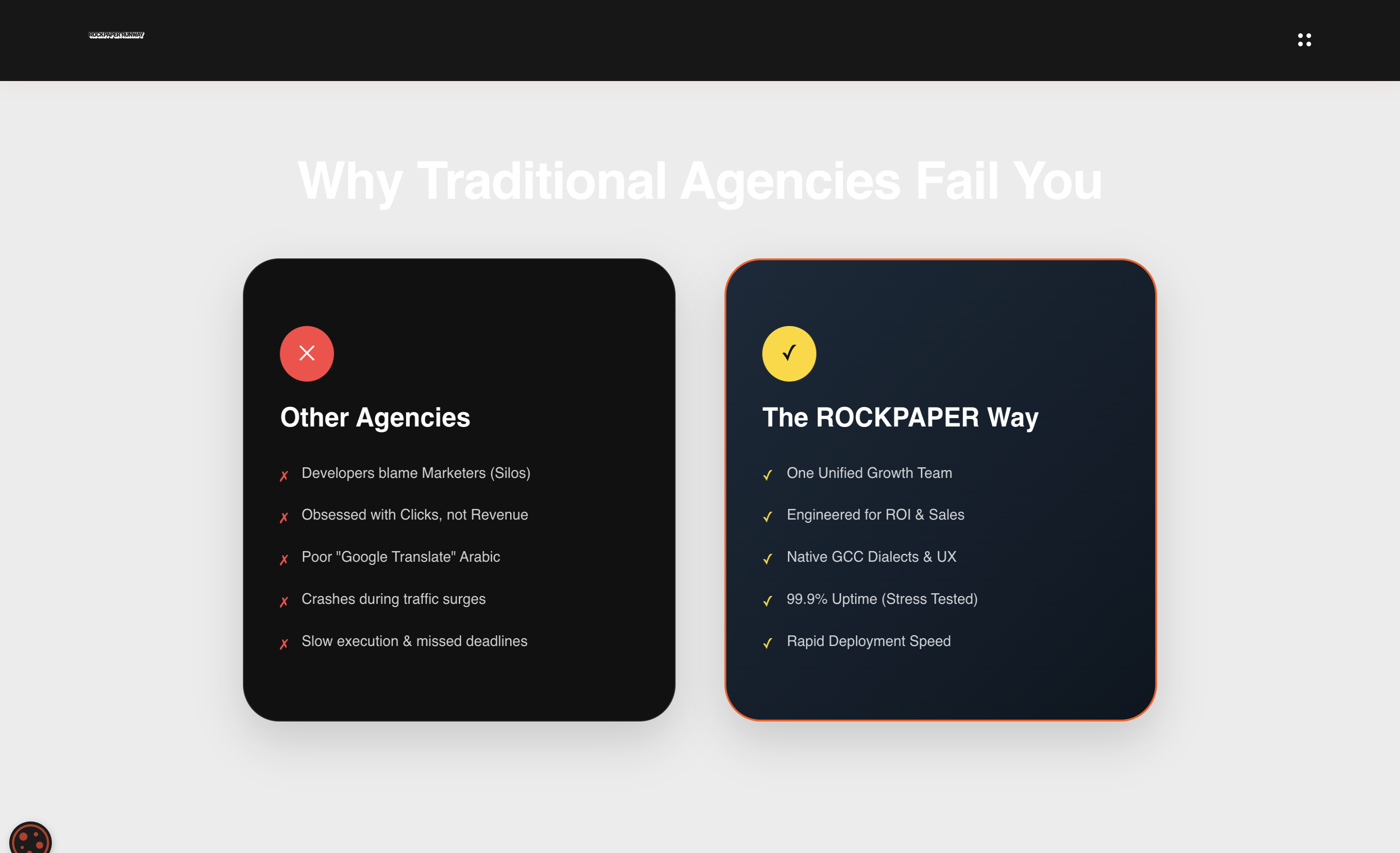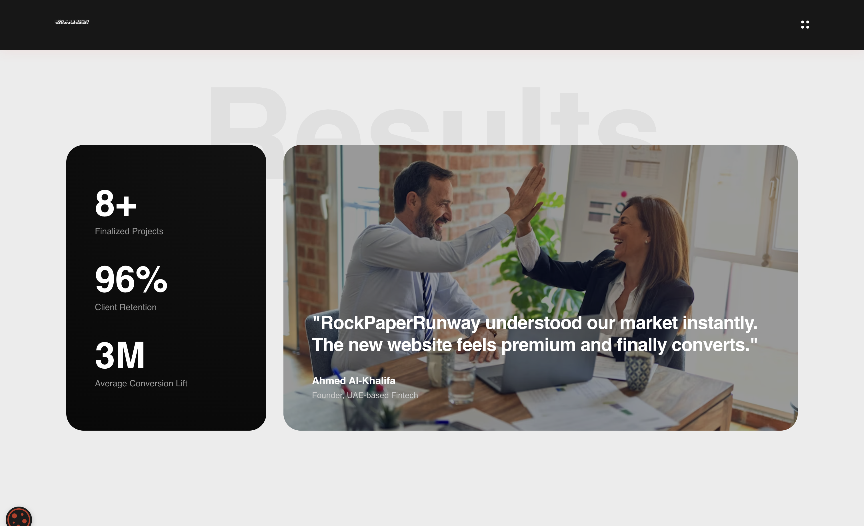 A clean, modern agency template for Rockpaper Runway with strong editorial presence.