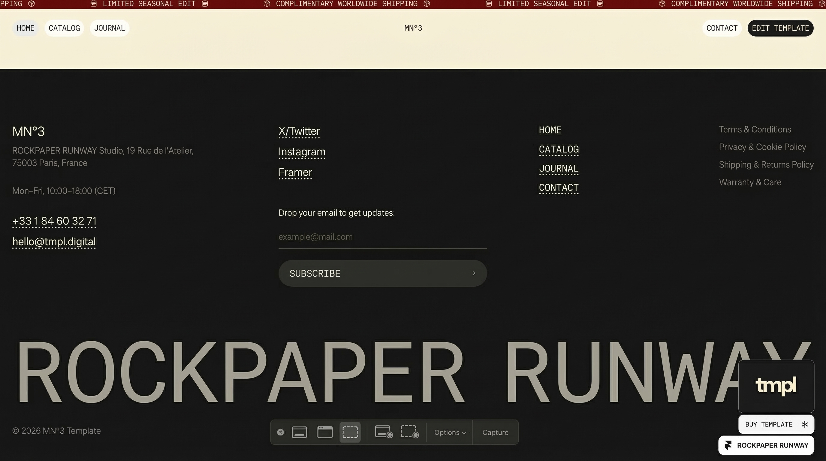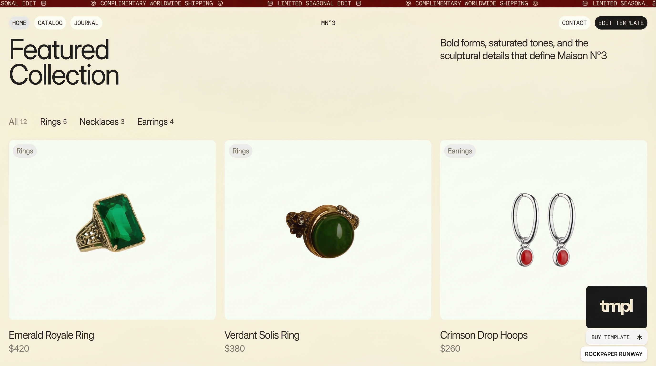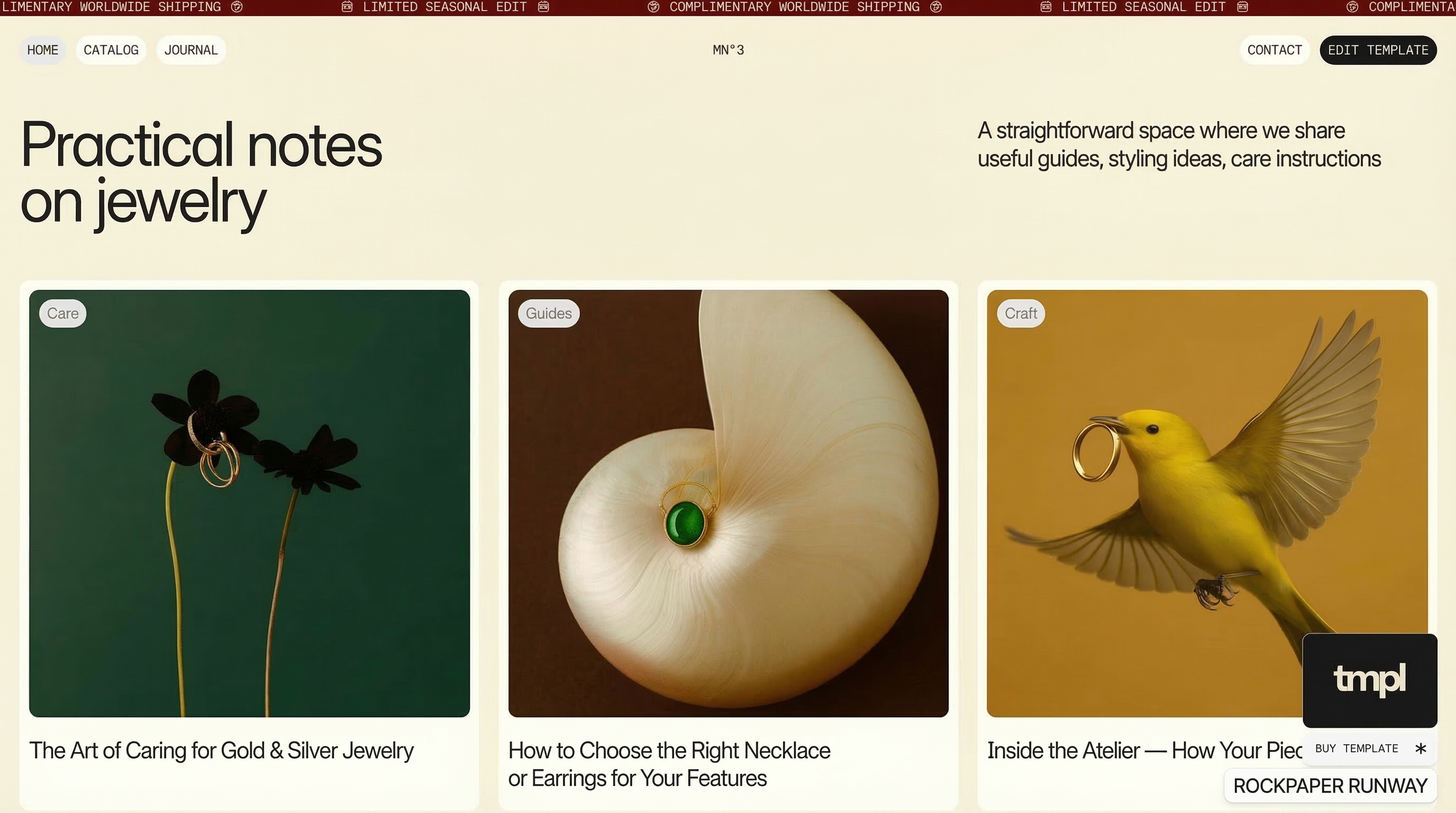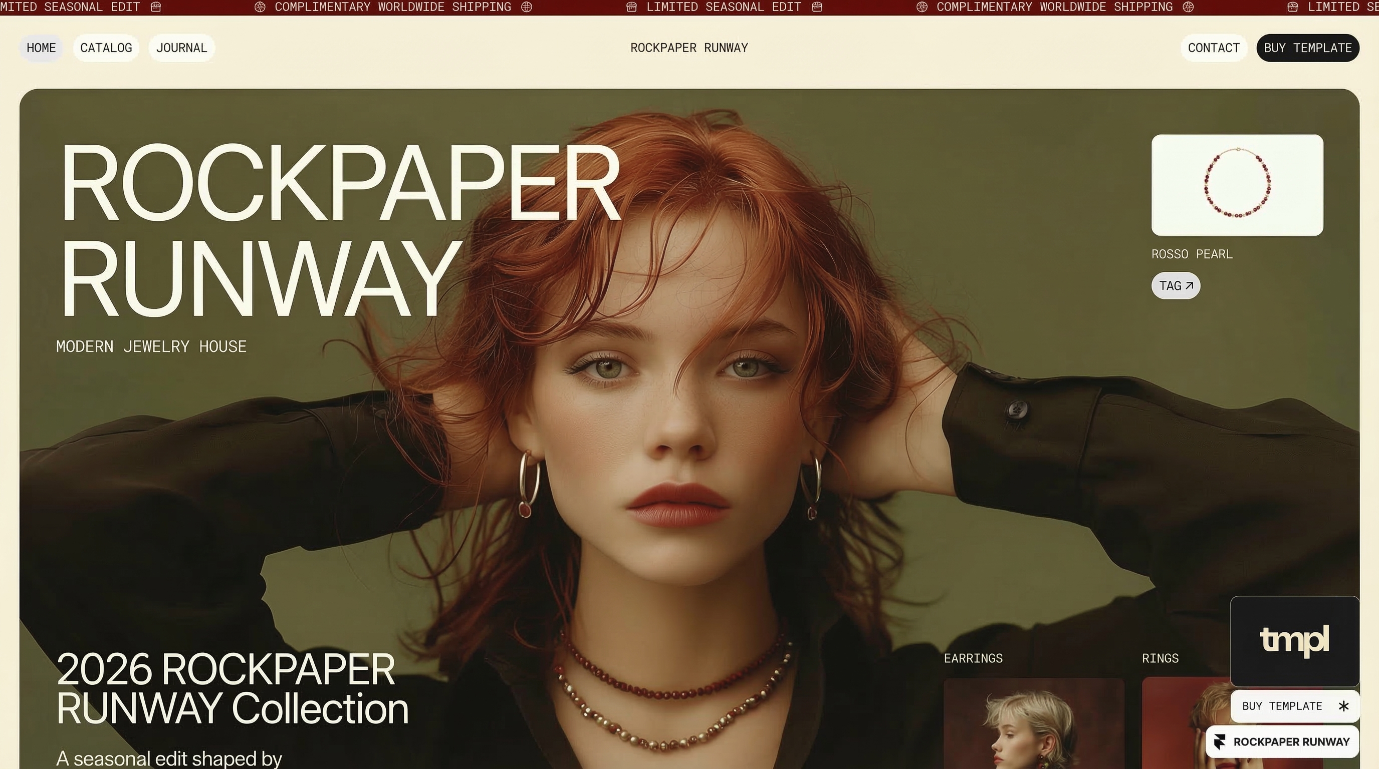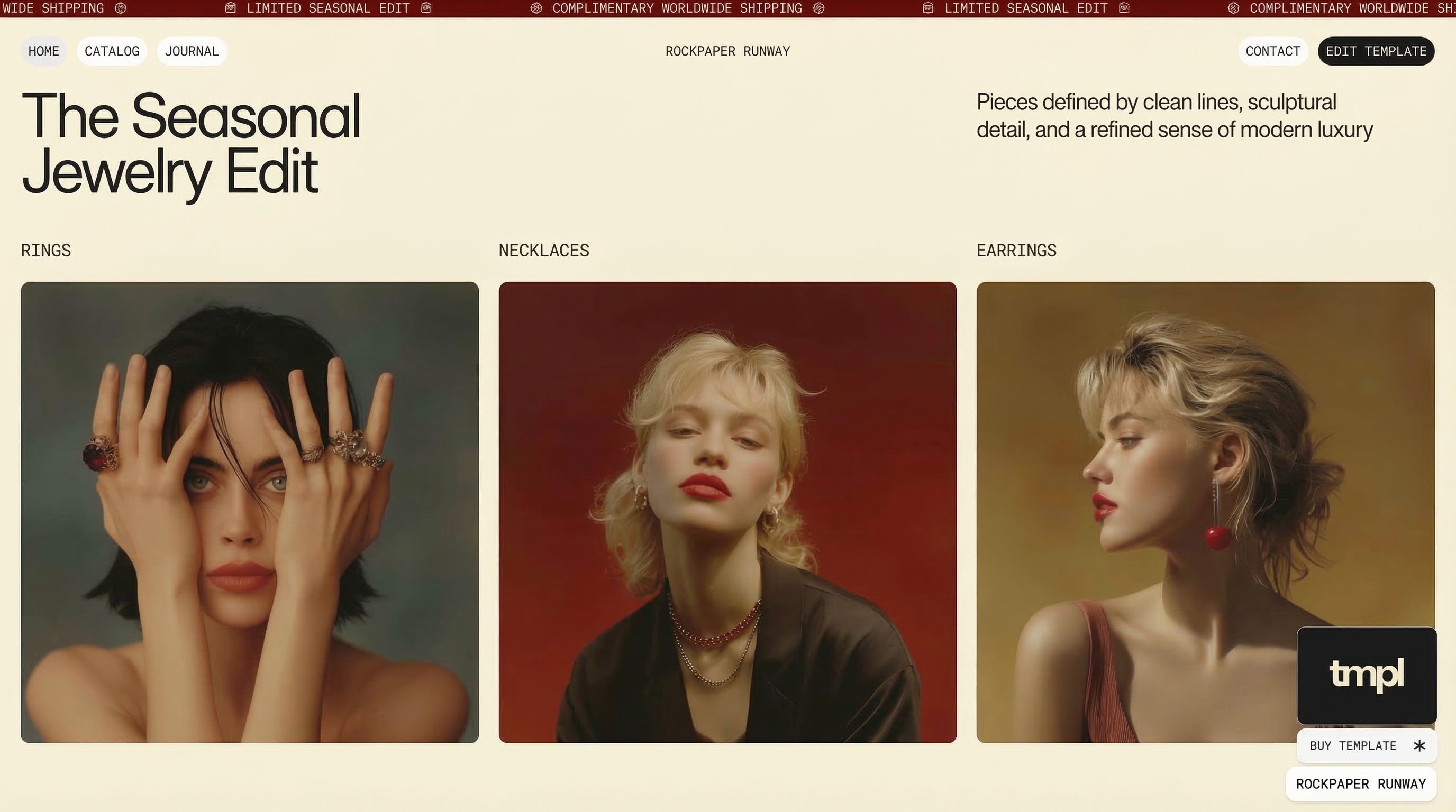 A luxury fashion and jewellery store for Rockpaper Runway. Quiet confidence, editorial layout.